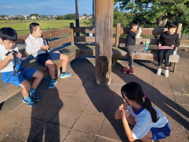 本日15時50分頃、火災の避難訓練をしました。初めての避難訓練でしたが、きちんと話を聞き、職員と一緒に近くのほほえみ公園まで避難することができました。