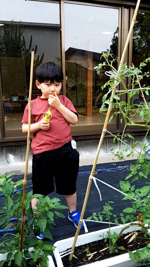 ホームダイアリー トマトの収穫♪ 2024年7月26日2024年8月22日 ピーマンの収穫からしばらくして、トマトもたくさん実りました。甘いトマトでした♪とうもろこしとすいかもできています。収穫が楽しみです。