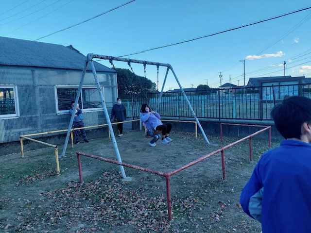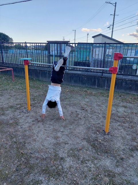 ホームダイアリー 公園へ 2024年11月25日 近くの公園へ遊びに遊びに行った時の写真です。事業所の近くの公園には、ブランコや鉄棒があります。この日も、自分の好きな遊びを見つけて、楽しんで過ごしていました。少しづつ寒くなってきましたが、天気の良い日は公園にも遊びに行きたいなと思っています。
