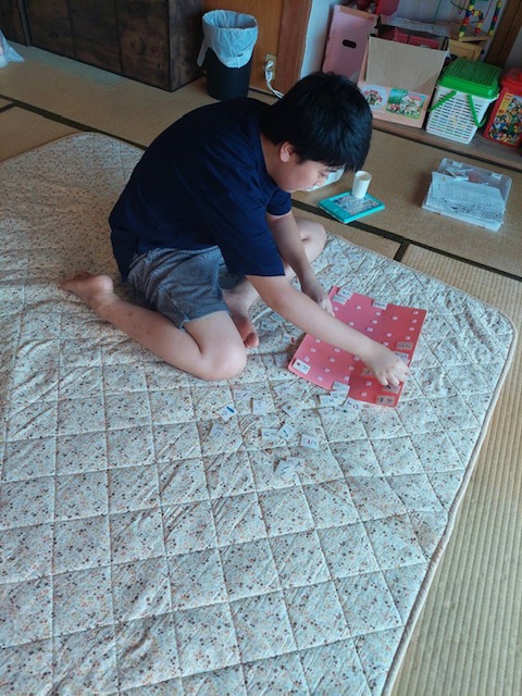 学習の後は、友達とブロック遊び。ビー玉を転がして楽しんでいます。