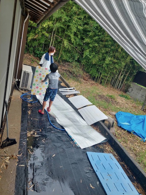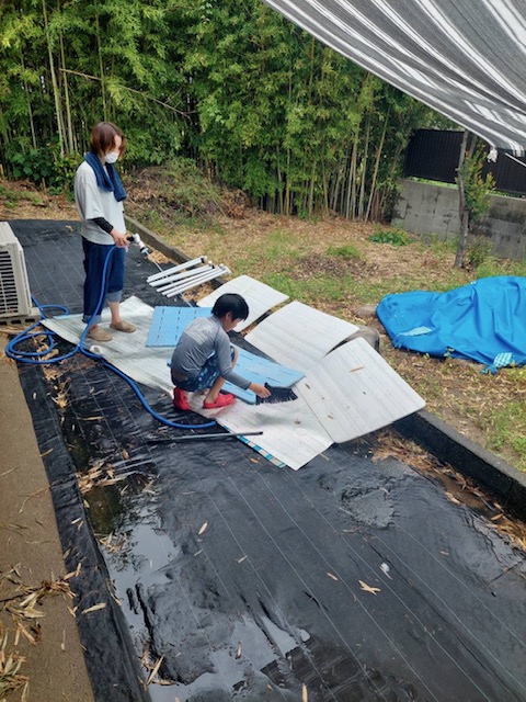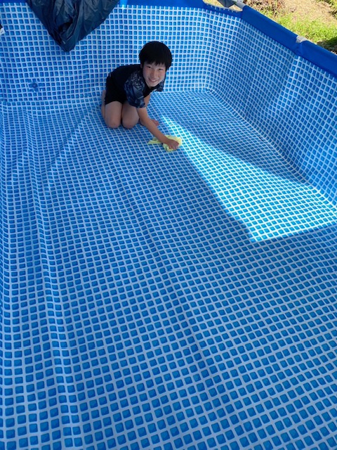 ホームダイアリー プールの片付け 2023年9月1日 夏休み期間、天気が良い日はプールで遊びました。プールに入った後の掃除は、職員と一緒に子どもたちも進んで掃除してくれました。いつもお手伝いありがとう。来年もプールで遊ぼうね。と大きなプールを片付けました。